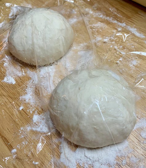On a floured surface, divide the dough in half and shape each into a smooth round ball.